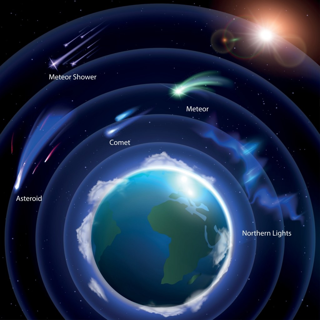 Most of the Sun’s storm gets deflected, but some of the energy slides down the sides of our shield and enters the Earth’s atmosphere at the North and South Poles. When those solar particles hit our air, they make it glow in beautiful, dancing colors. That’s what creates the aurora borealis (the Northern Lights)!