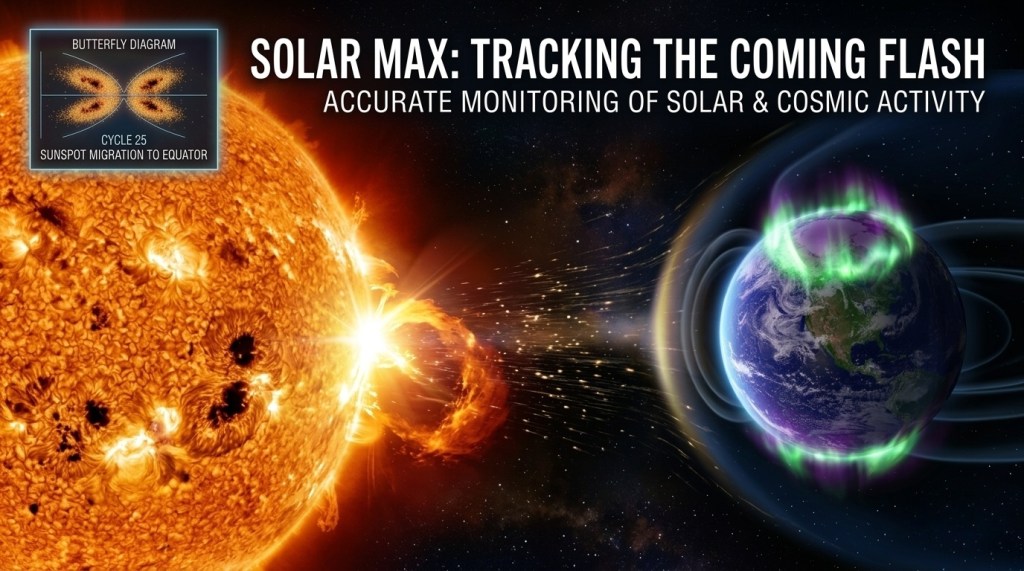 But when sunspots are in the “Direct Fire Zone” (near the Equator), they are aiming right at us! And that’s exactly where we are right now in Solar Cycle 25. The Sun is wide awake, and its sunspots are aims directly at Earth!